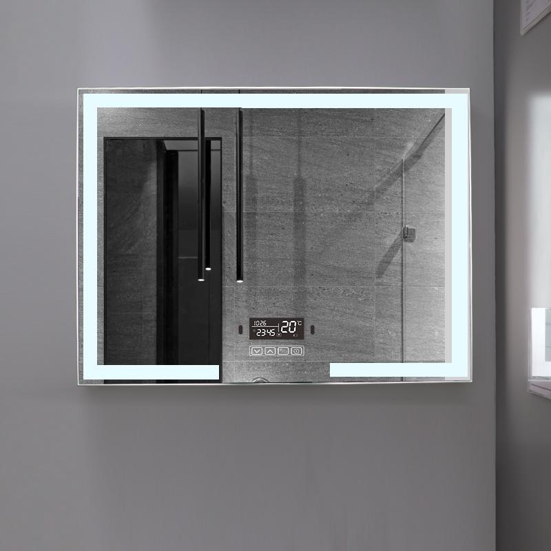 在LED浴室镜中,更具智能感的功能就是時间显示和温度显示以及蓝牙音乐了。今日带大家了解一下这种LED浴室镜中的時间温度显示功能。含有这一功能的LED浴室镜又称作多功能浴室镜。它是依据镜面玻璃夹层玻璃上的蓝牙手机显示屏来显示時间以及温度的。