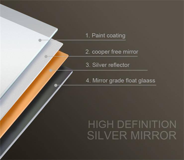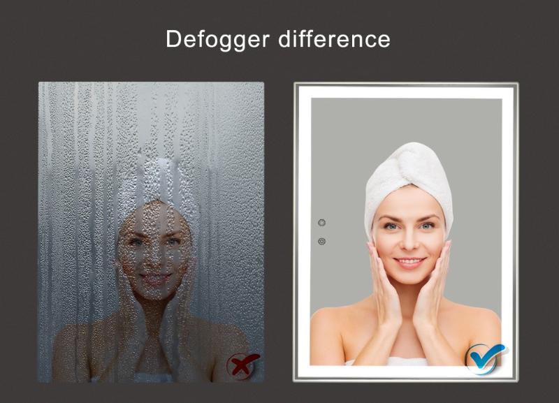 LED智能浴室镜除雾功能,无论是洗澡还是洗头,即使雾气或水滴沾在镜子上也会迅速消失,12v低温加热防雾膜,安全耐用,镜面快速清晰。
